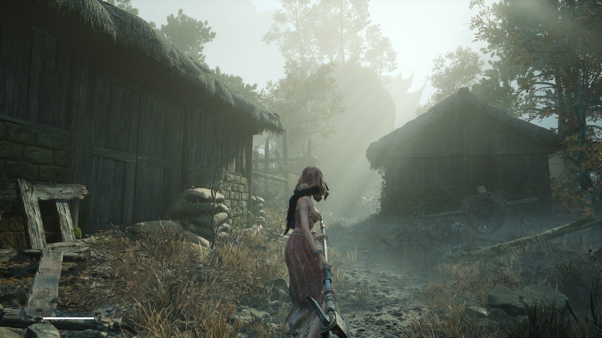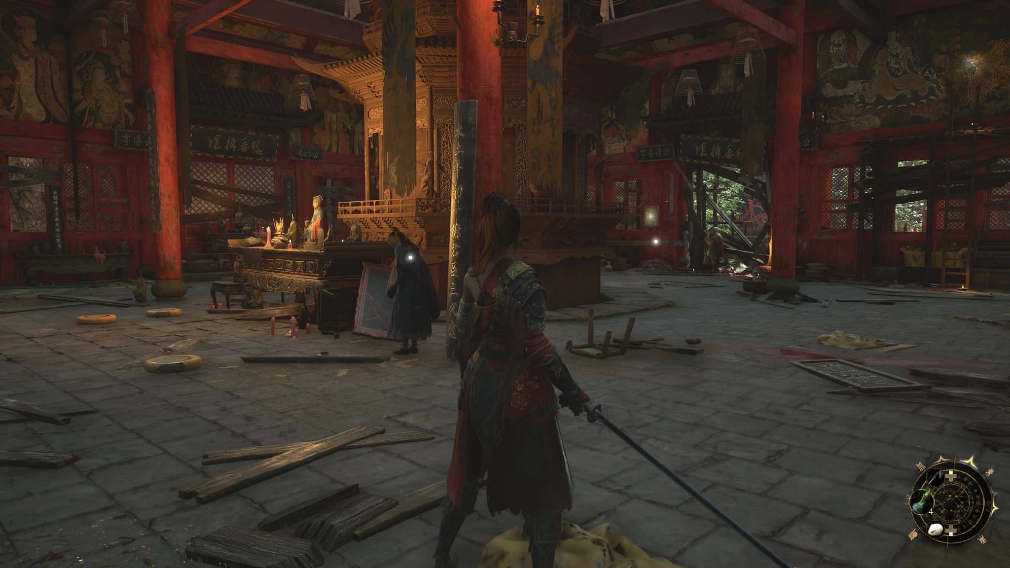 最先打動我的是場景與氛圍的美學營造。走出新手區,一整座錯落有致的中國古建築群映入眼簾:灰瓦飛簷、木構長廊、香火繚繞的寺廟與墓園,在細膩視覺風格的襯托下格外有味道。老實說,我對中國歷代建築風格並沒有深入研究,但這款遊戲卻成功地說服了我:「眼前的,就是明代末年的世界」。那種厚重、蒼涼,又略帶荒敗感的氣質,搭配敵人的服飾、兵器與場景殘骸,一切都讓人信服。