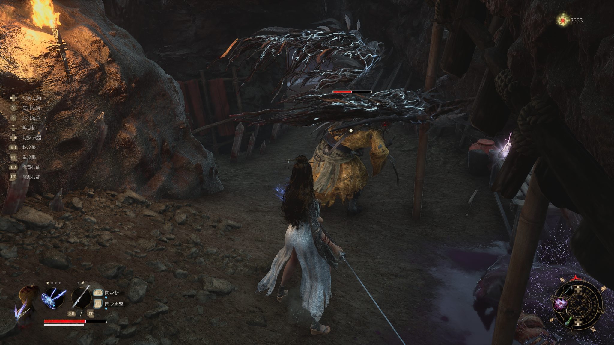 遊戲核心戰鬥設計同樣令人印象深刻。它大力鼓勵玩家練習「完美閃避」,並將其融入整個戰鬥資源循環。只要成功閃避,便可獲得名為「須羽」的資源,這可用於施放法術、流派技能,或縮短重攻擊蓄力,形成「閃避 → 回擊 → 爆發」的戰鬥節奏。這不只是硬碰硬,更像是一場技巧與節奏的舞蹈。