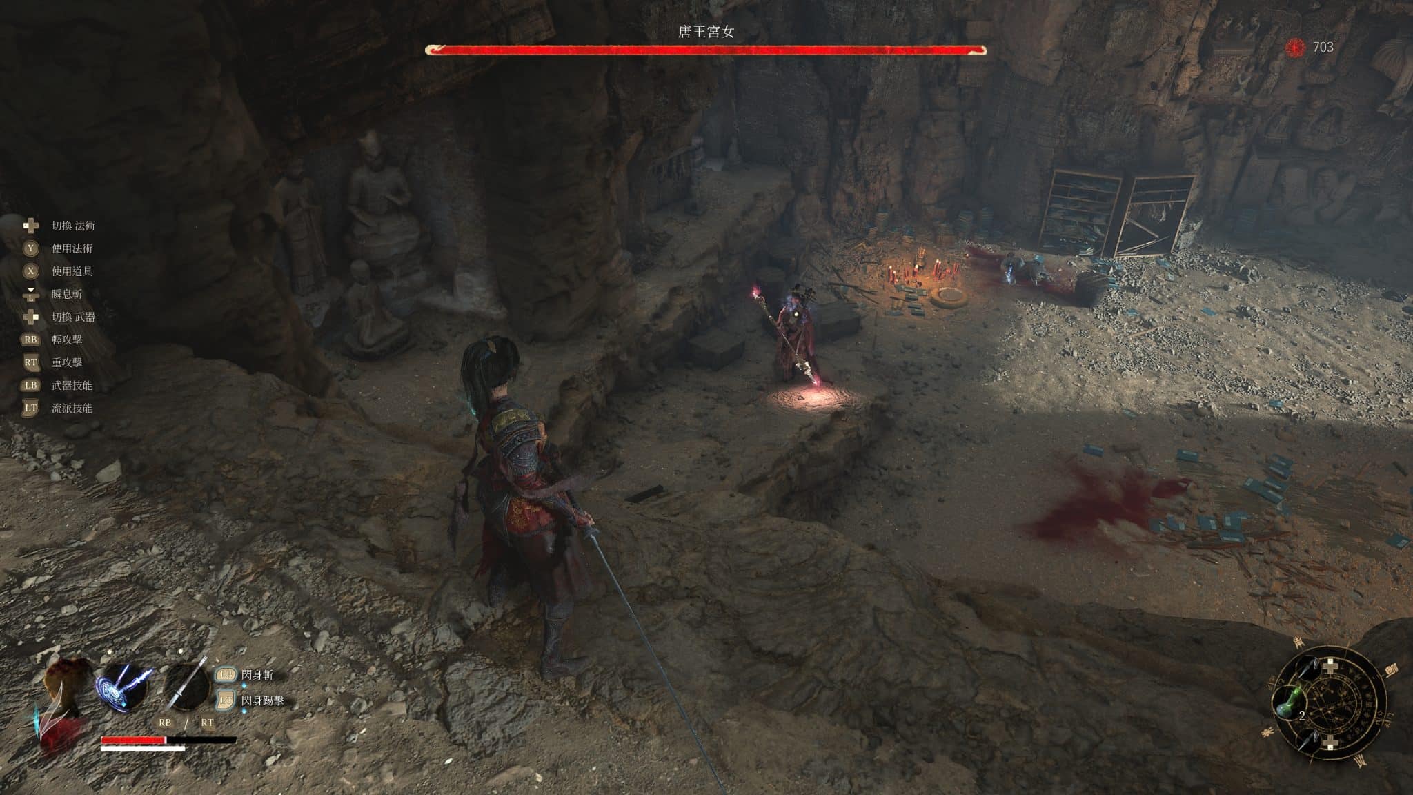 遊戲首先以精妙的地圖連通設計抓住了我,一步步推進時那種「原來能通這裡!」的驚喜感,讓我重溫初次探索《血源詛咒》雅南時的興奮。而魔王戰的演出與節奏,則是另一大亮點:每位 BOSS 都有鮮明的動作語彙與戰鬥風格,有種「不是在打怪,而是在與一位武藝高強的大將過招」的張力。更令我驚喜的是,它一改魂系一貫「點好不動」的設計思維——技能樹可自由洗點,武器強化與流派轉換也極為彈性,硬派戰鬥之餘,還能玩出更多變化。