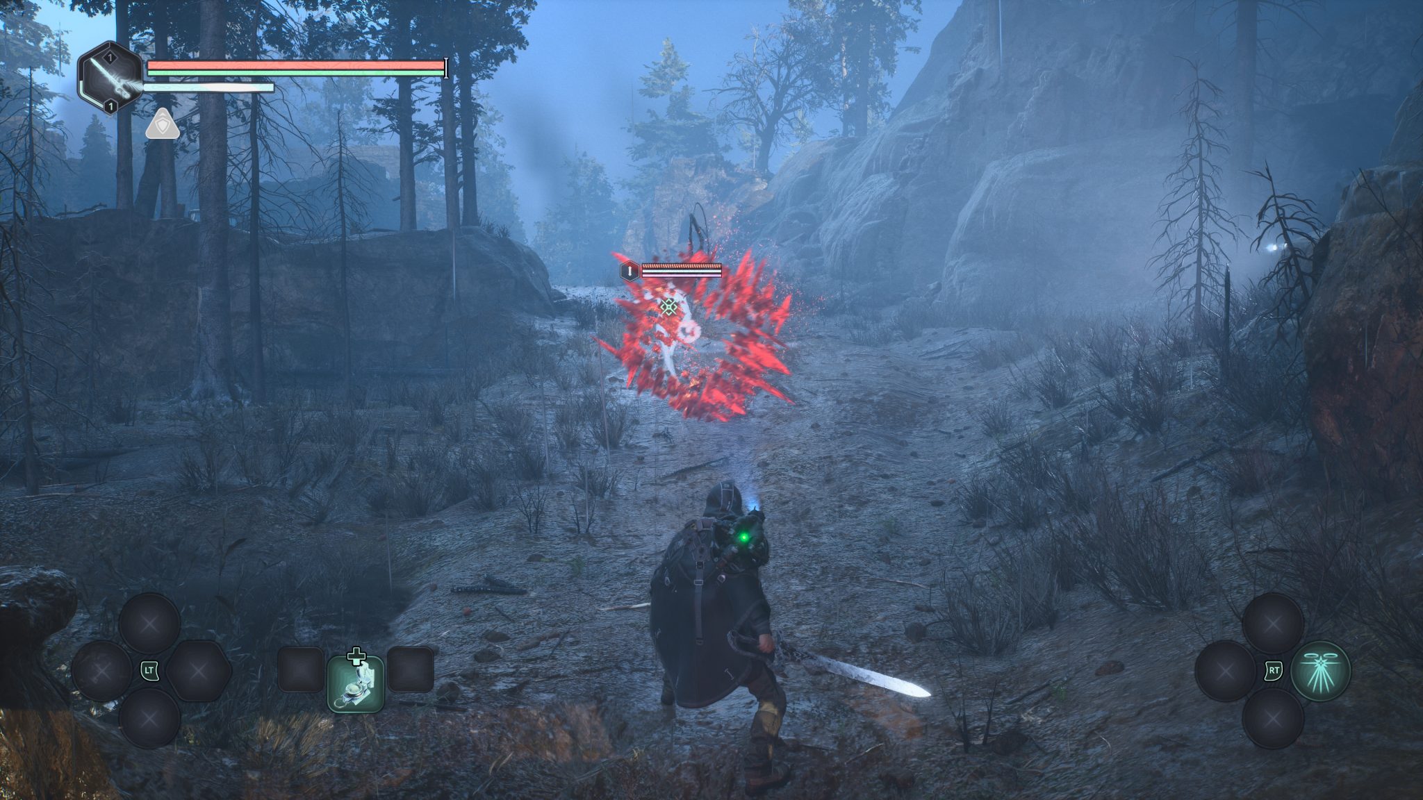 戰鬥部分,這款遊戲採用了現代化的類魂設計:有精力條,抓準時機格擋能讓敵人陷入硬直。與多數魂類不同的是,本作更鼓勵積極進攻。武器的傷害會隨著連段數提升,主角甚至能透過不斷攻擊來回血,連段數越高,回復量也越可觀。但這套風險並非沒有代價——當血量下降時,精力條會同步受到限制,動作頻率大幅減少,壓力隨之倍增。