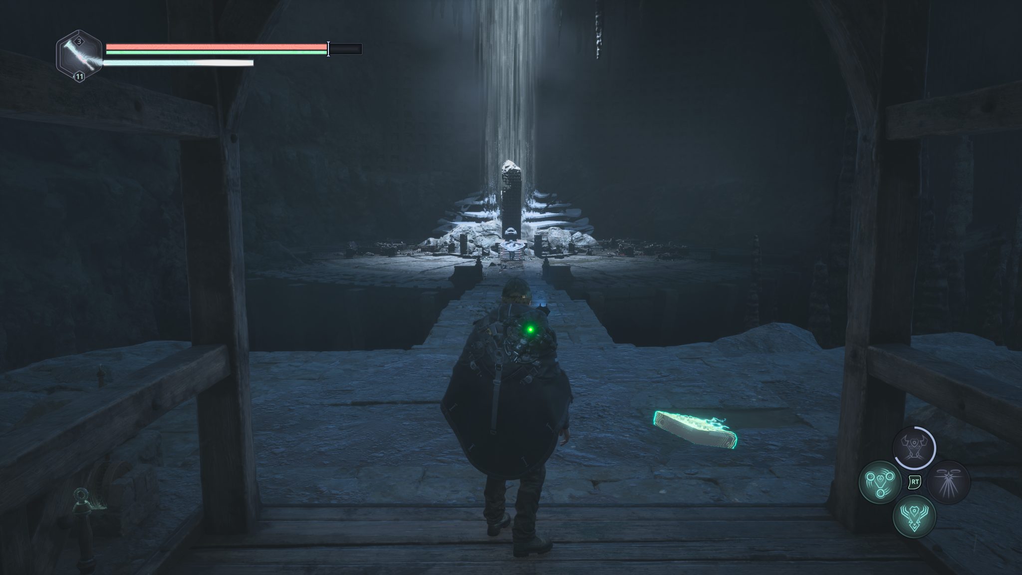 遊戲的地圖明顯借鑑了魂類作品的長處:錯綜複雜、環環相扣。常常會有一條看似明確的道路就在眼前,但製作團隊偏偏故意設下障礙,逼著你繞遠路尋找突破口。這種「餌」很粗暴,卻意外有效,推動了玩家的探索慾望。回饋則多半是延遲的,你可能當下只拿到一個道具或寶箱,但實際上那只是謎題的一塊拼圖,必須繼續在地圖中尋找剩下的碎片,才能拼湊出完整答案。