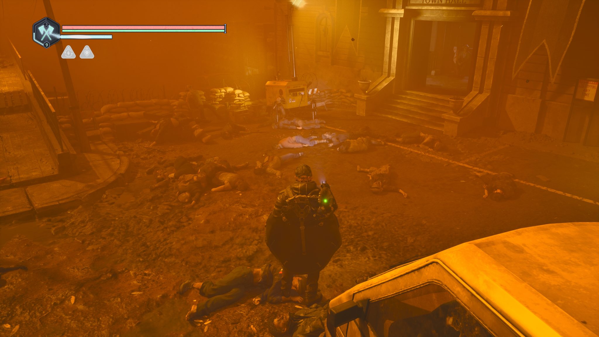 更令人驚喜的,是遊戲在世界觀塑造上的細膩程度。這不只是一場與超自然敵人的對抗,而是以戰爭為背景的恐怖寓言。隨機與路邊 NPC 的對話,經常透露出戰火下的人性陰暗與暴行,讓遊戲的世界充滿殘酷的現實重量。這些細節與美術氛圍相輔相成,使遊戲在「戰爭恐怖」的主題上有了自己獨到的聲音。
